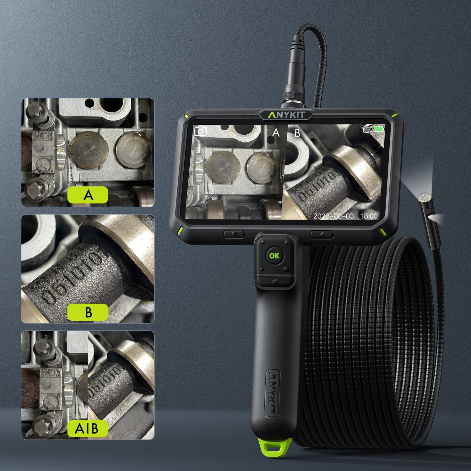 Anykit 6" IPS Screen Endoscope Camera with Light, Dual Lens Digital Inspection Camera with Split Screen, 1080P Industrial Borescope with WiFi Function,Flexible Gooseneck Snake Plumbing Camera