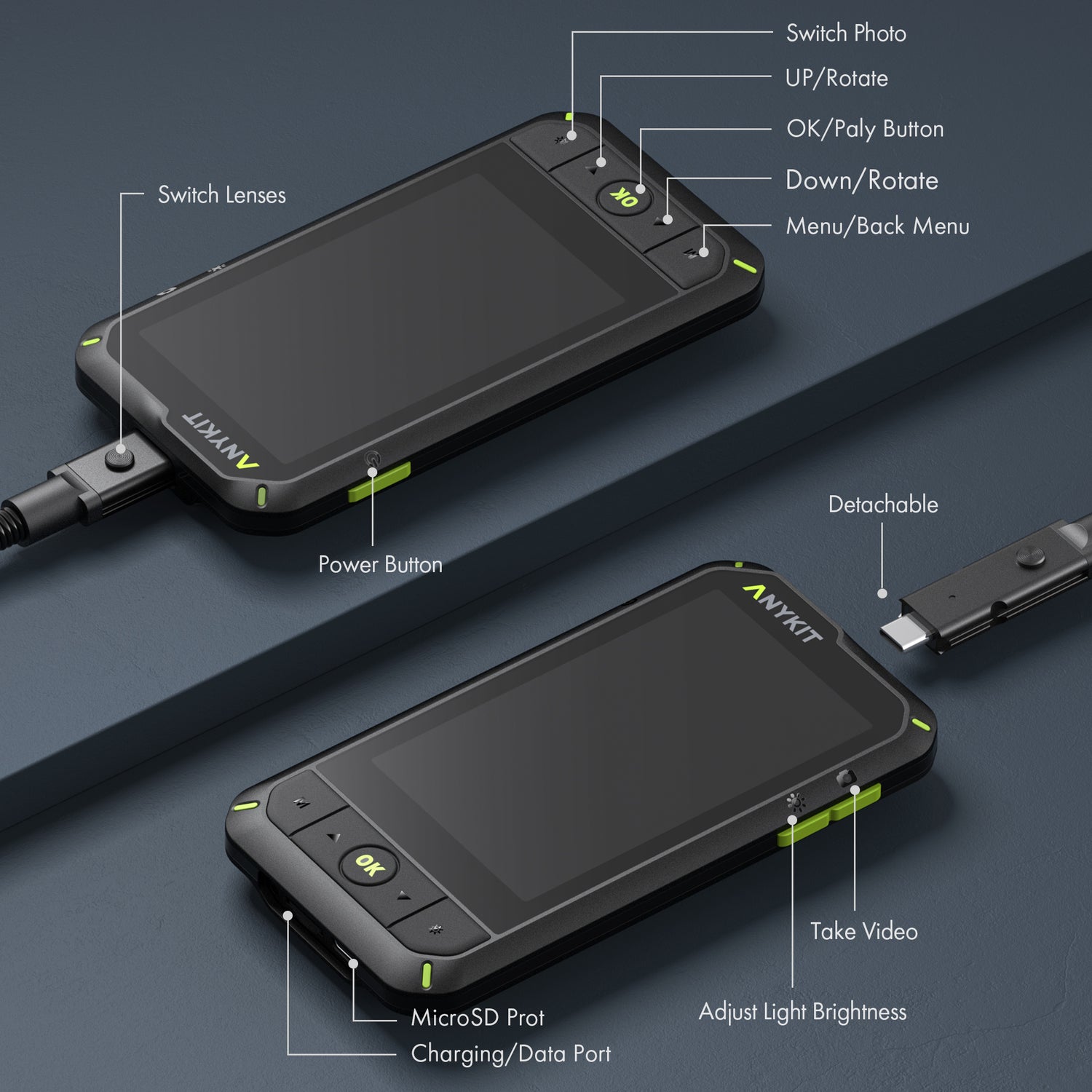 Anykit Borescope Camera with Light, Anykit Dual-Lens Endoscope Camera, 1080P Digital Video Inspection Camera with 4" IPS HD Screen, Waterproof 16.5ft Semi-Rigid Snake Cable, 32GB Card