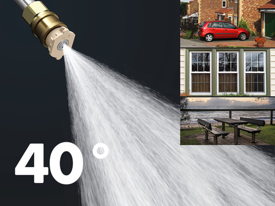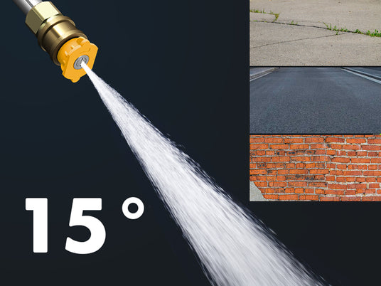 The adaptable 15° nozzle achieves optimal balance between concentrated cleaning and broad coverage. Its angled spray pattern efficiently removes dirt on driveways, sidewalks, and other large surfaces, while maintaining the accuracy required for specific cleaning tasks.
